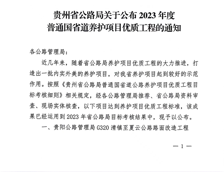近日,省公路局公布的《2023年度普通国省道养护项目优质工程》22个项目名单中,其中有8个项目由我公司设计,省公路局推进的养护项目优质工程,打造出一批内实外美的养护项目,对我省养护项目起到较好的示范作用。